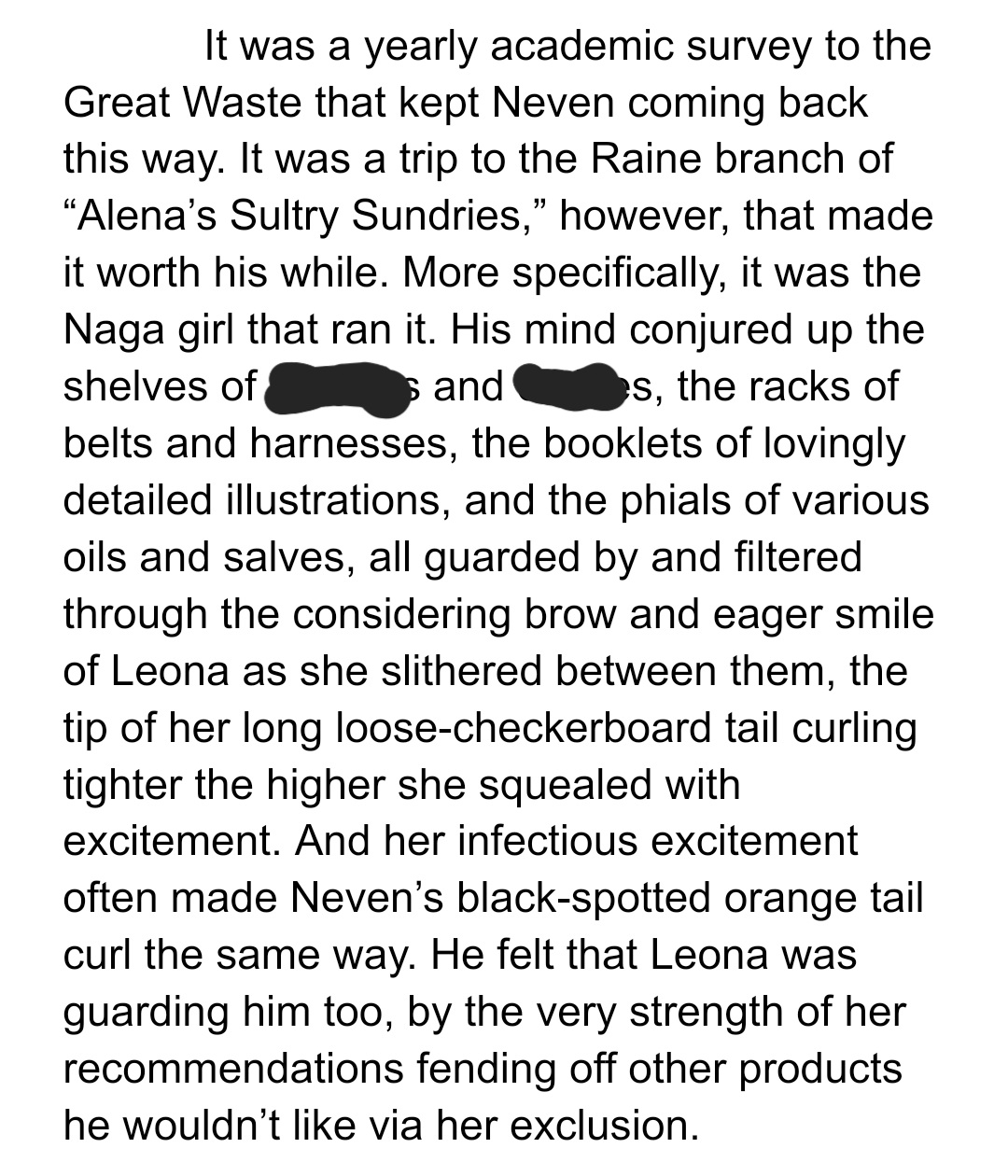 When Felien grad student Neven arrives in Raine on his way to his annual survey of the Great Wastes, he makes a stop to see his favorite shopkeep, Leona. His assumptions about their chemistry receive a shocking update, but while licking his emotional wounds in the inn's tavern, Leona comes to apologize. With the misunderstanding cleared up, they head to Neven's room to see how right he actually was.